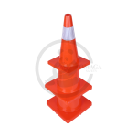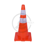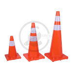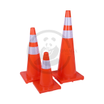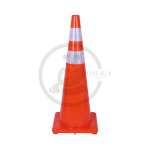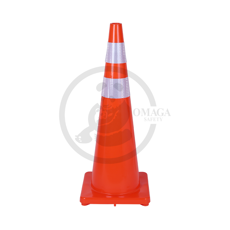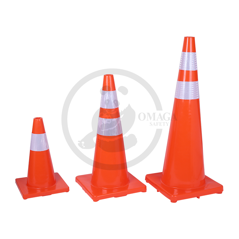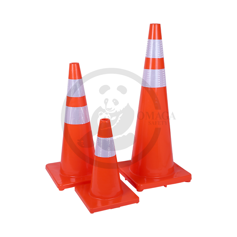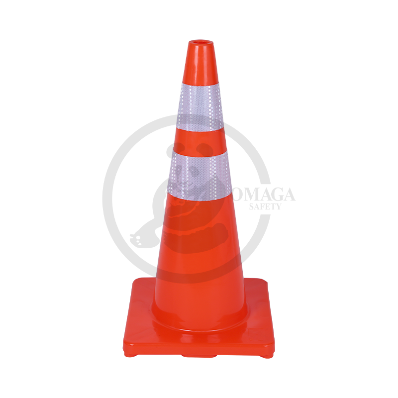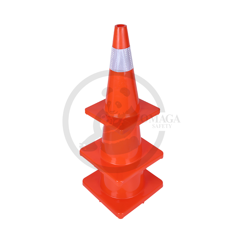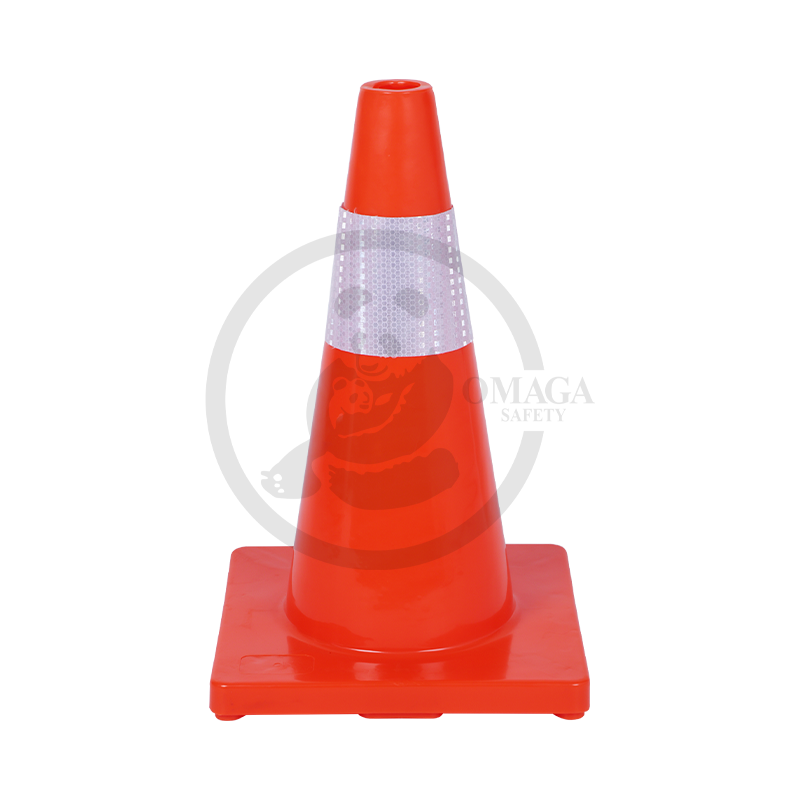 The PE (polyethylene) plastic cone with a rubber base is a durable and stable traffic and safety cone, featuring a brightly colored body for enhanced visibility, a reflector for improved low-light and nighttime visibility, and a weighted rubber base to prevent tipping.