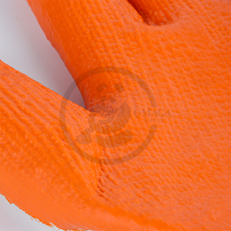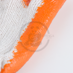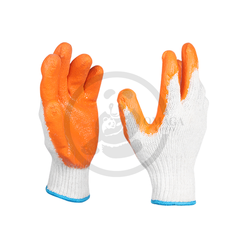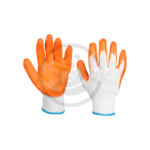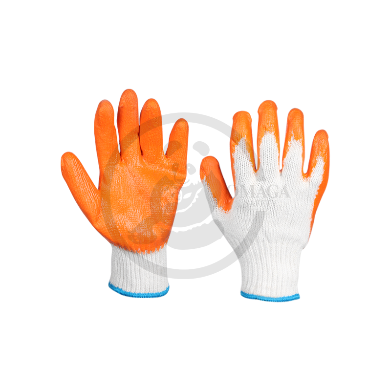 These gloves feature a cotton fabric underneath for a comfortable fit and a rubber coating on the outer surface to enhance grip and resistance to water, dirt, and chemicals. The combination of materials offers both comfort and protection, making them ideal for handling tools, working with rough materials, or performing tasks in wet or hazardous environments.