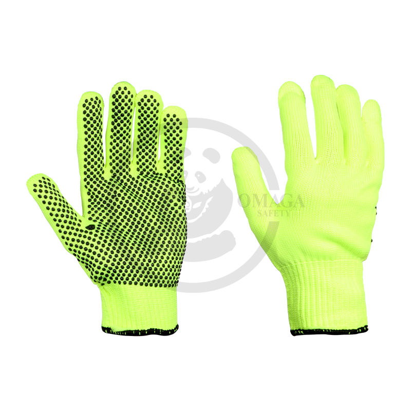 Dotted gloves made from a polycotton blend are crafted from a combination of cotton and polyester, providing a balance of softness, breathability, and durability. The gloves are often enhanced with PVC dots on the palms and fingers, which offer superior grip and control. These gloves are ideal for tasks like handling slippery objects, assembly work, packaging, or light industrial tasks. The polycotton material ensures comfort and flexibility, while the PVC dots help prevent slipping and provide extra traction, making them perfect for tasks that require a firm, non-slip hold.