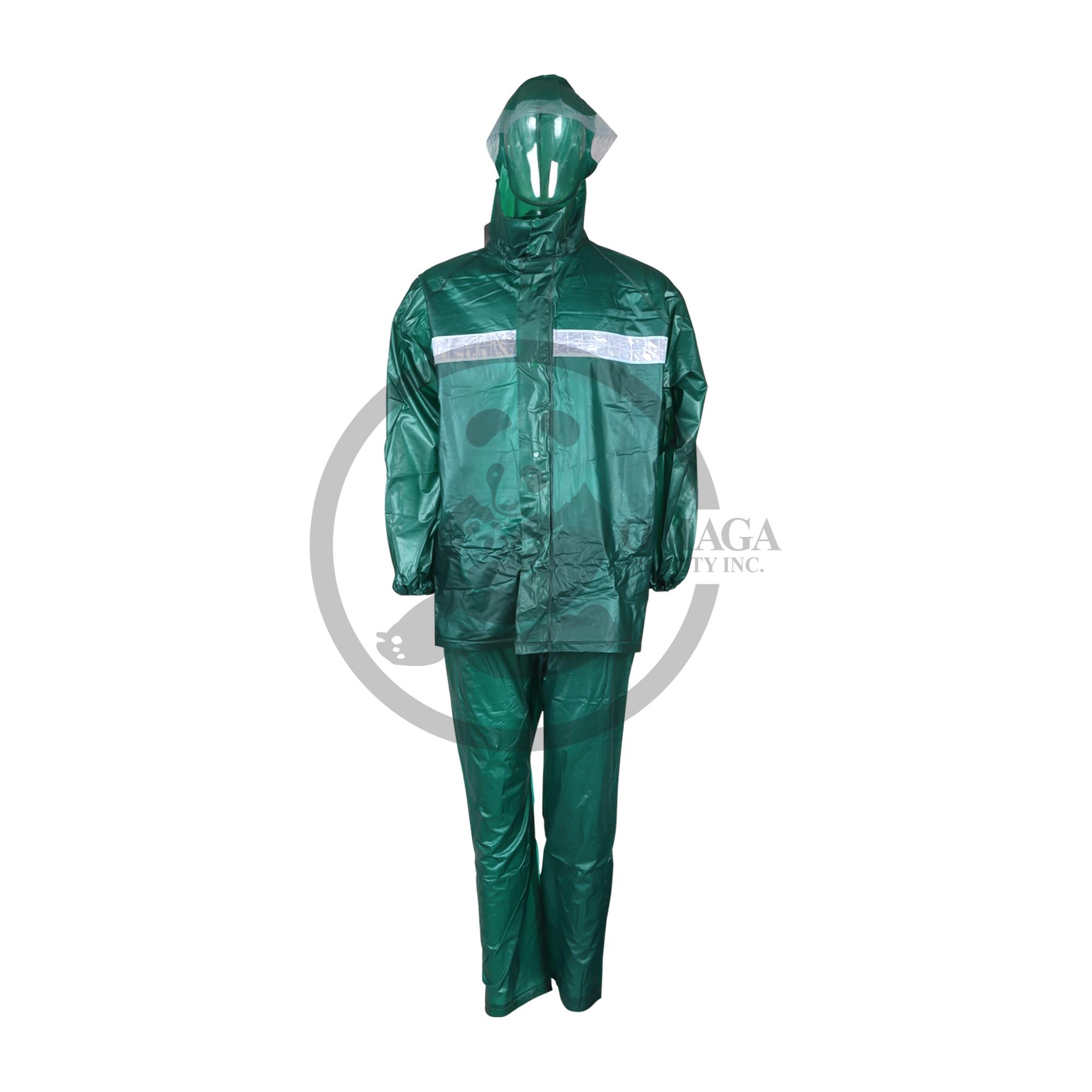 Features: Hood in the collar with draw strings, zipper and lock buttons on the front, high quality workmanship, waterproof, 100% waterproof, comfortable and breathable function