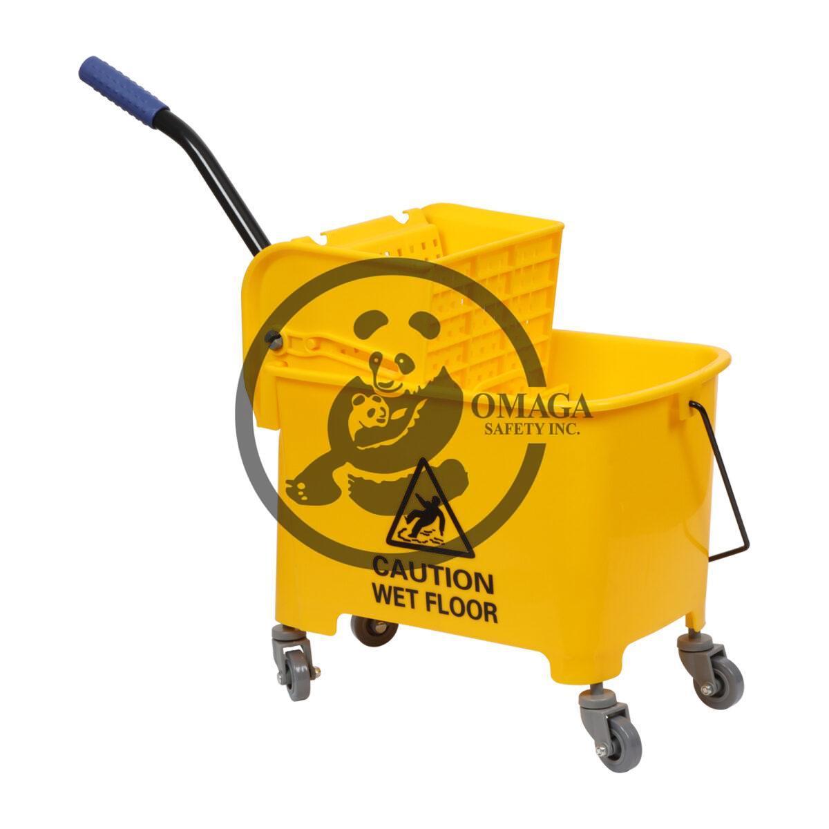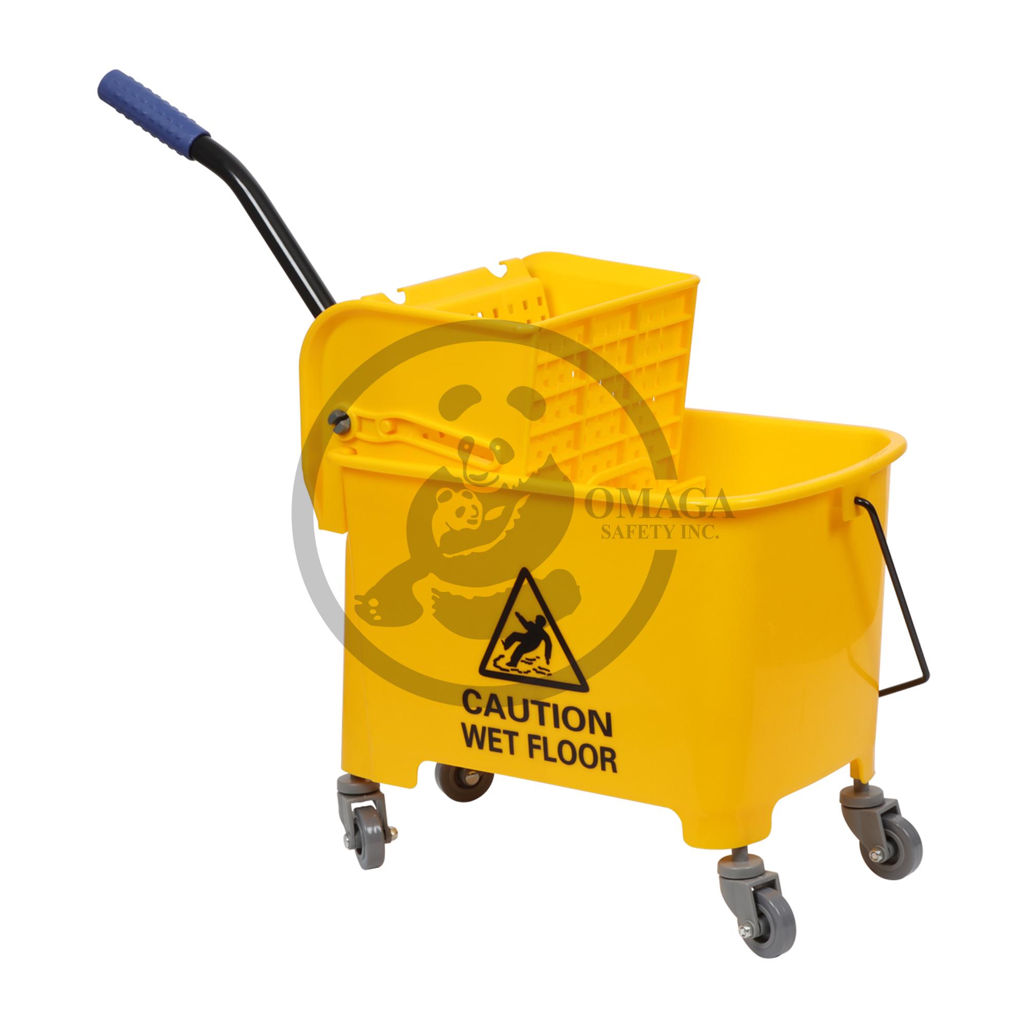 Color: Yellow Material: PP plastic + Steel Capacity: 42L Parameters: 63 x 38 x 97 (cm) Features: Deluxe side press wringer, 4-caster wheels, easy lift handle with hand grip, and easy to squeeze Application: Hotels, manufacturing plant, machinery repair shops, food & beverage factory, restaurant, home use, retail, food shop, malls, construction works, etc.