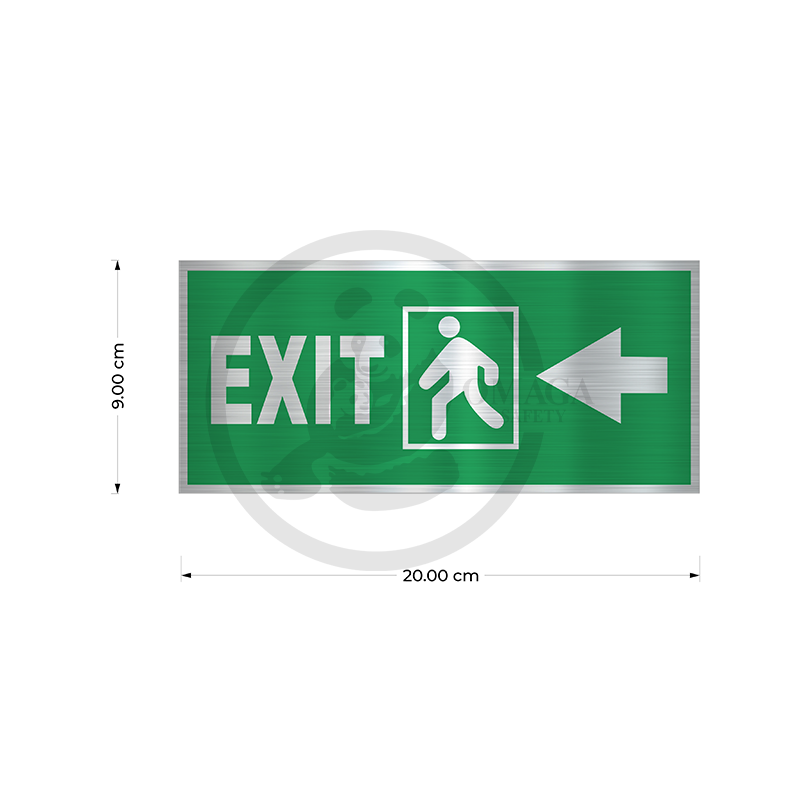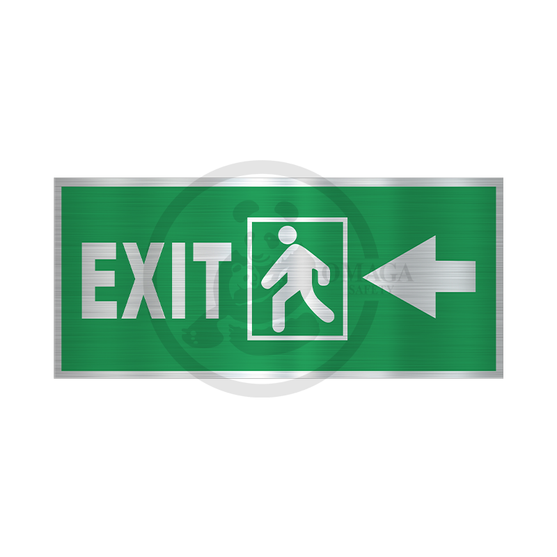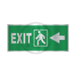 An “Exit sign with a left arrow” shows that the exit is to the left, helping people find the way out easily and safely.